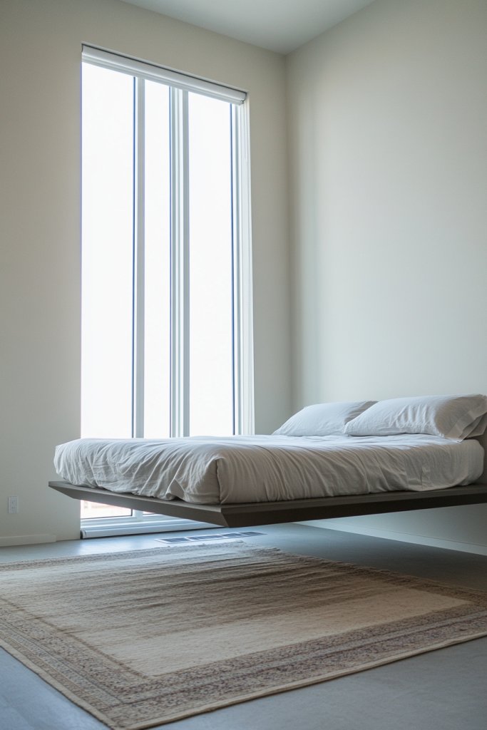 This concept adapts to various styles—minimalist with plain surfaces, or more luxe with upholstered headboards and integrated nightstands. For smaller rooms, it maximizes space by eliminating bulky bed frames. In larger spaces, it adds a futuristic vibe, especially with integrated LED lighting or floating side tables. Seasonal changes can be easily incorporated by swapping bedding or adding textured throws that complement the floating aesthetic.