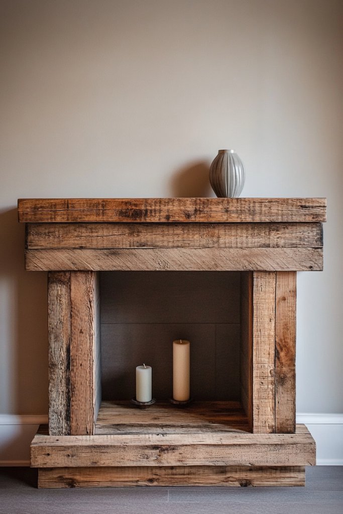 Decorate with minimal items—think simple candles, lanterns, or woven baskets—maintaining the rustic-modern balance. Change decor seasonally to keep the mantel fresh. Incorporate personal touches like family photos in simple frames or handcrafted items. The key is to keep it uncluttered yet inviting.