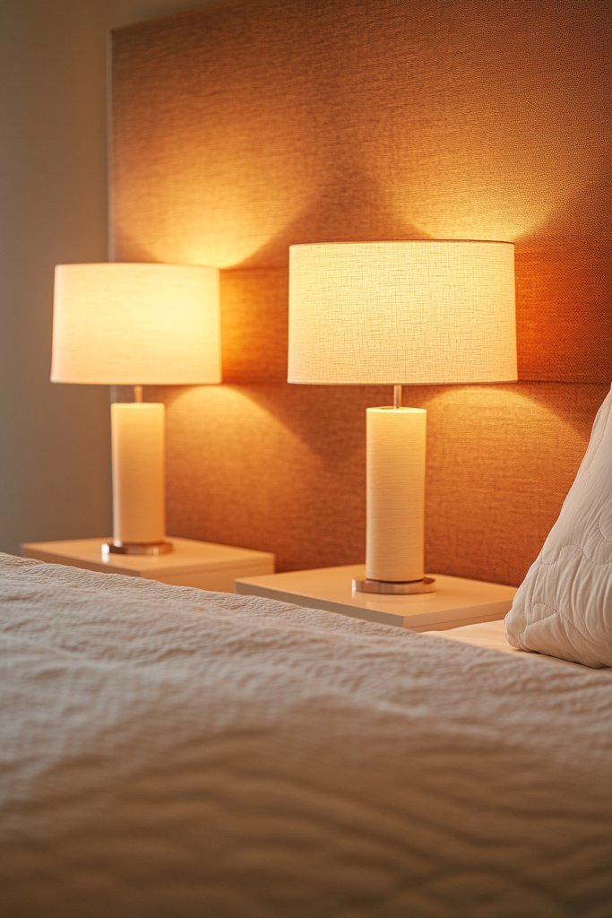 8. Elegant Bedside Lamps with Soft Glow