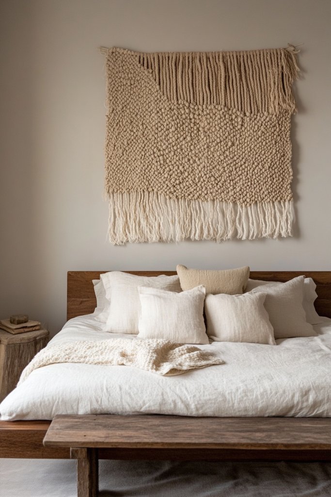 Flat walls can feel uninspiring or stark, especially in a neutral-toned bedroom. Adding textured wall art or tapestries offers a subtle way to introduce depth without disrupting the calm aesthetic. But finding pieces that blend seamlessly and don’t overwhelm can be tricky.