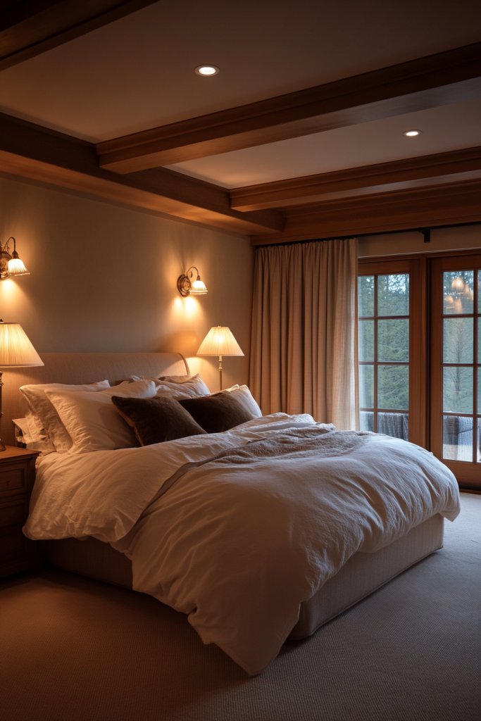 Incorporate wall sconces on either side of the bed for balanced lighting—perfect for reading without cluttering nightstand surfaces. Pendant lights in warm metals can hang from the ceiling, adding a sculptural element. For a softer glow, consider adding candles or LED candles—no fire risk, just cozy vibes. Use dimmers on all fixtures to tailor the mood, from bright to barely-there.