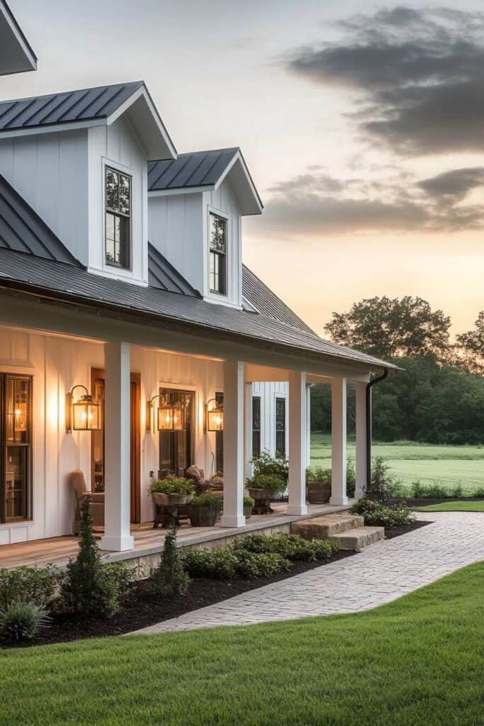 Metal roofs come in various styles and colors, allowing you to customize your farmhouse’s look while reflecting your personal taste. The reflective surface can even help keep your home cooler in summer, making it an energy-efficient option. Picture how sunlight dances off a sleek, dark metal roof, enhancing your home’s curb appeal.