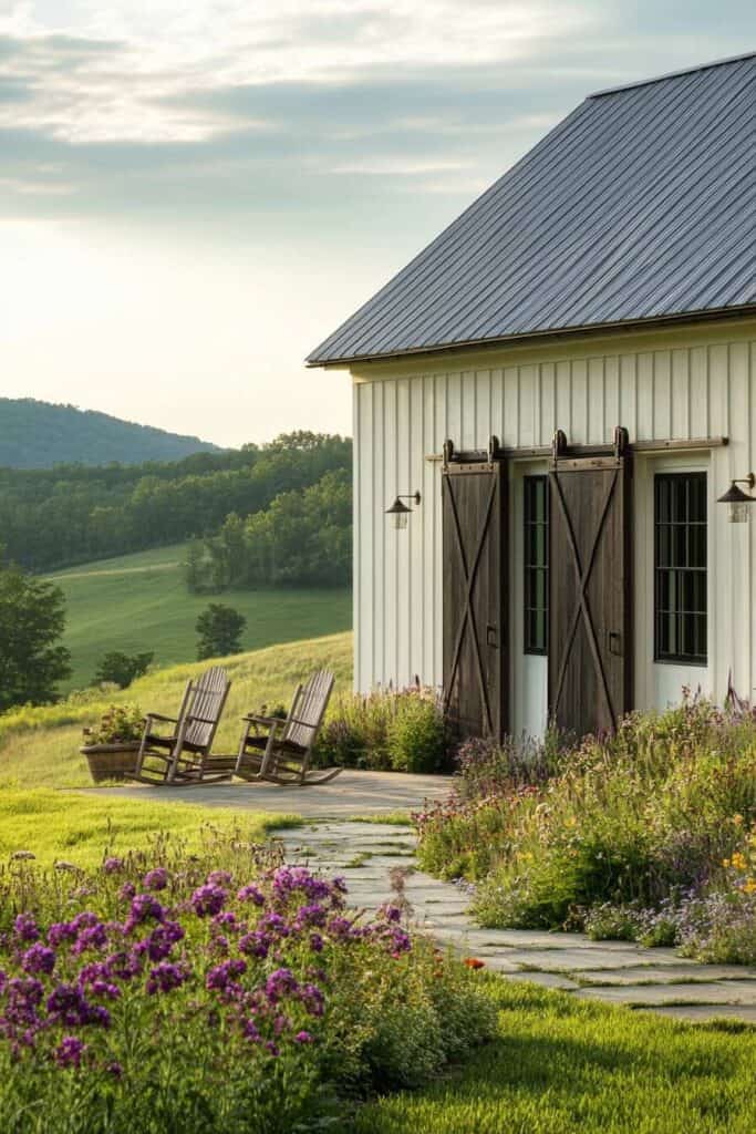 Adding a pop of color with decorative pots or hanging planters can accentuate your farmhouse’s exterior, drawing the eye and creating focal points. With strategic landscaping, you’ll create a harmonious blend of beauty and practicality, elevating your home’s charm while providing a serene retreat right outside your door. Embrace the vibrant possibilities to transform your outdoor space into a living masterpiece.