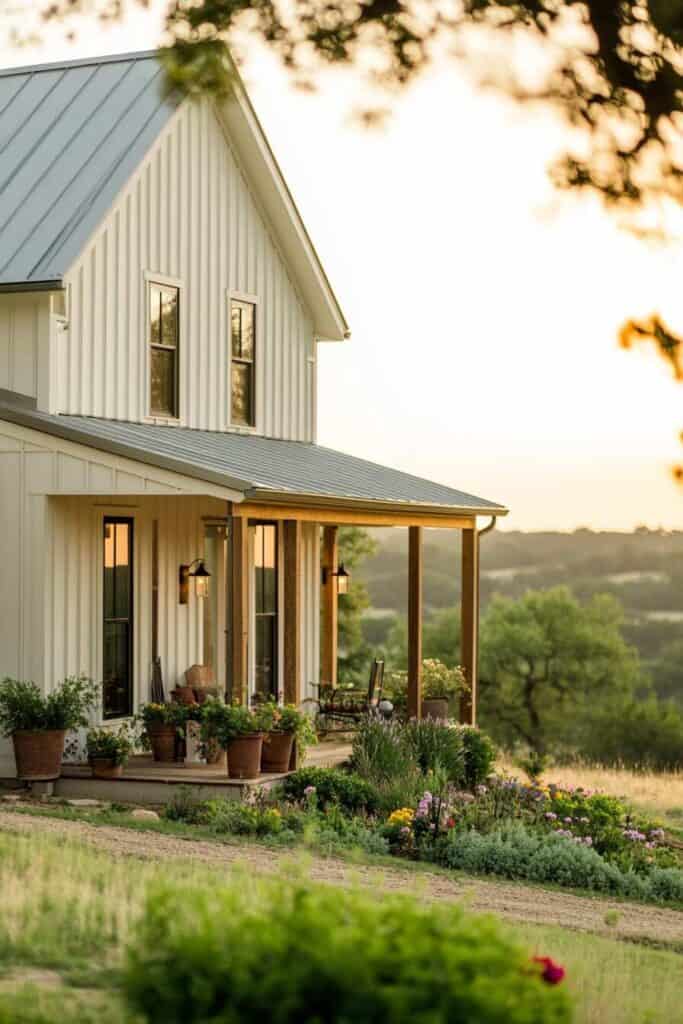 Although traditional shingles have their charm, sleek metal roofs are quickly becoming a favored choice for modern farmhouse exteriors. These roofs not only exude contemporary elegance but also offer exceptional durability, standing strong against harsh weather elements. Imagine the striking contrast of a shiny metal roof against rustic wooden siding, creating a visual harmony that captures attention.