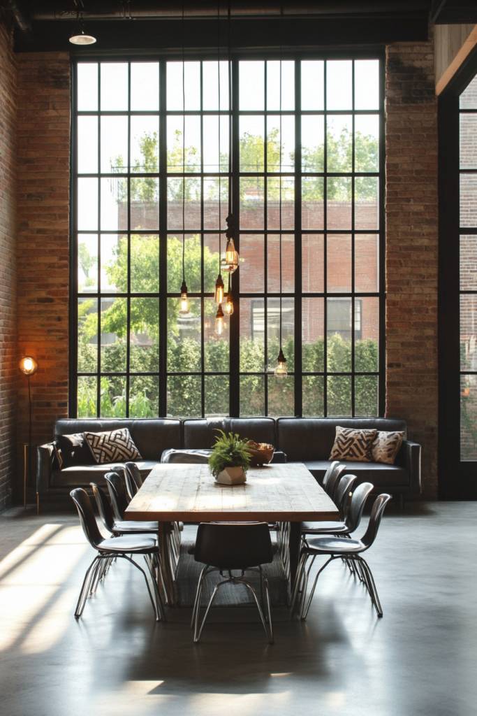 Incorporating large windows maximizes natural light, enhancing the open, airy feel typical of industrial spaces. Furniture often features reclaimed wood or metal, emphasizing sustainability while adding character.