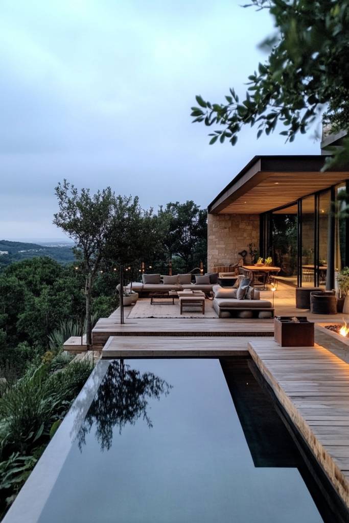 Consider incorporating outdoor living areas, like patios or terraces, that mirror your indoor decor, creating a cohesive flow. You might also explore the use of natural materials, such as wood and stone, to bridge the gap between inside and outside.