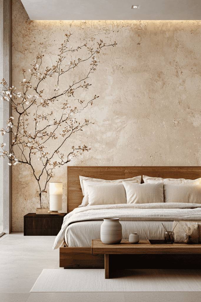 3. Warm and Earthy Japandi-Inspired Bedroom