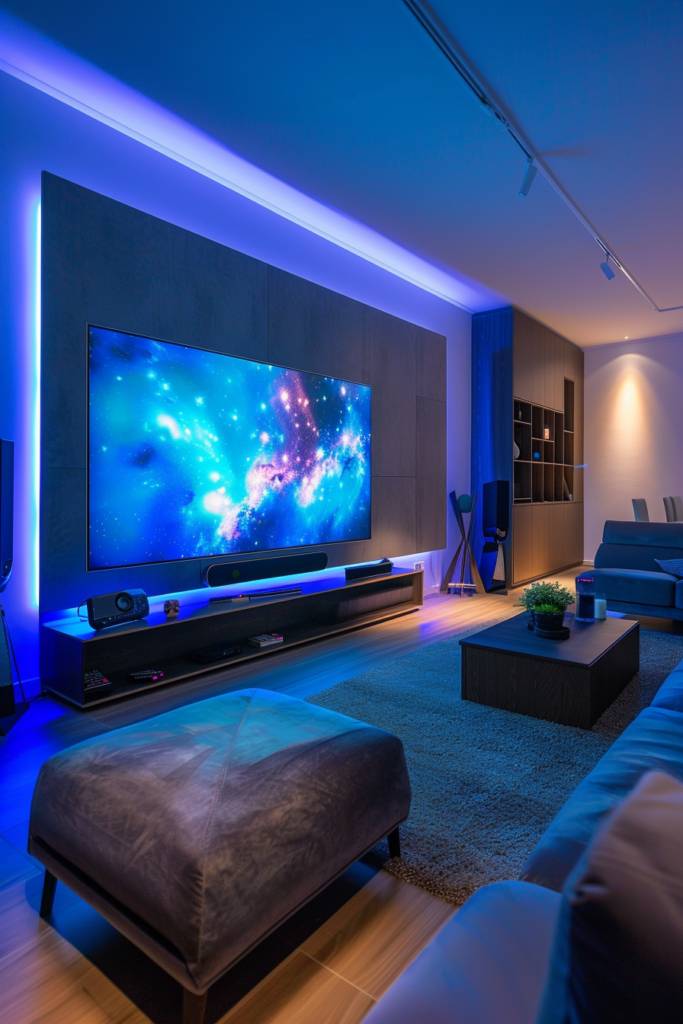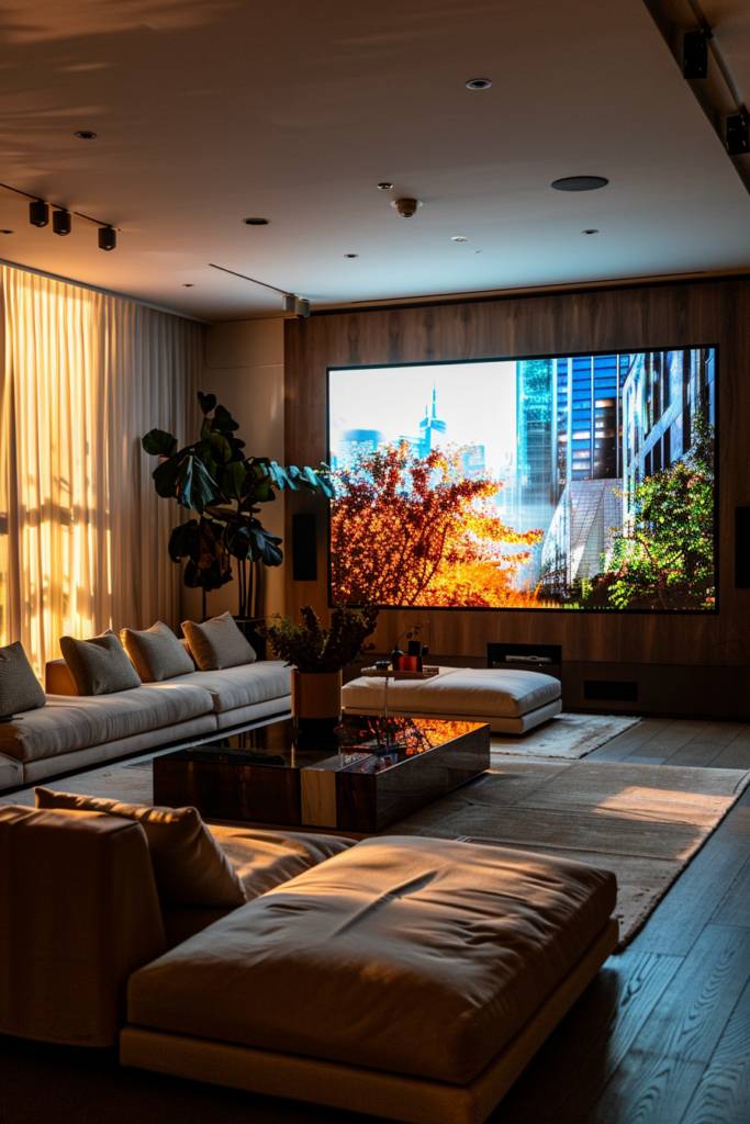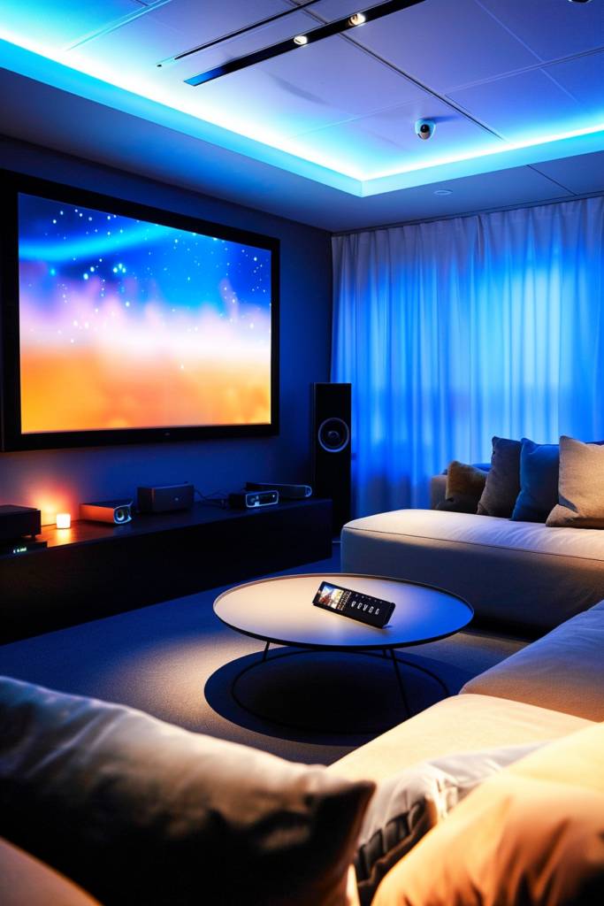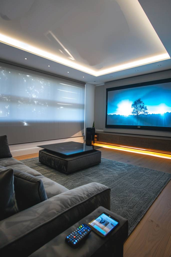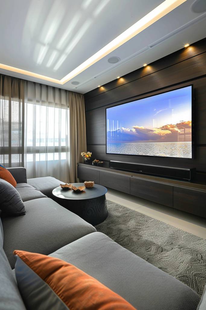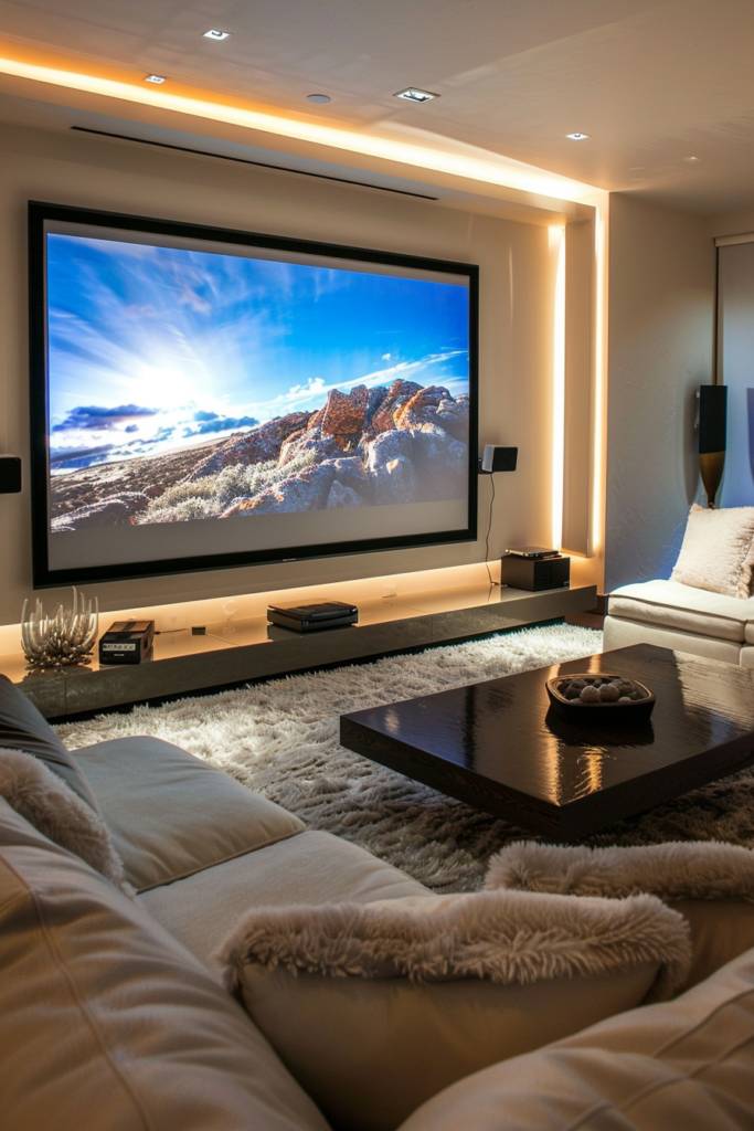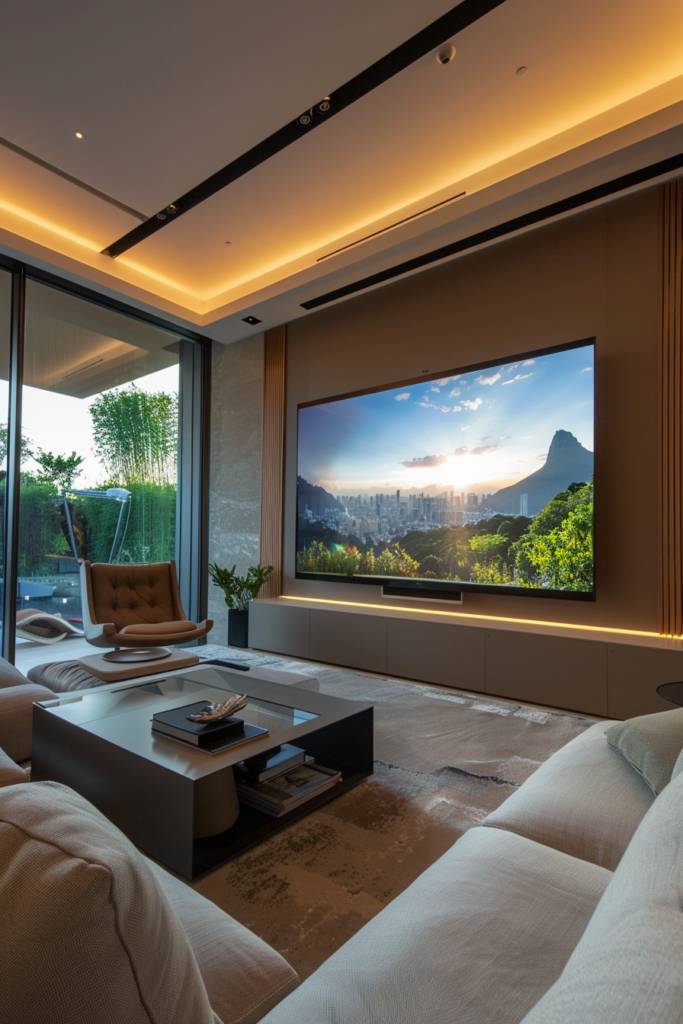 For added flair, consider accent lighting to highlight artwork or architectural features. This layered approach not only enhances the visual appeal but also enriches your viewing experience. Embrace smart lighting to create a versatile space that feels just right for every occasion.