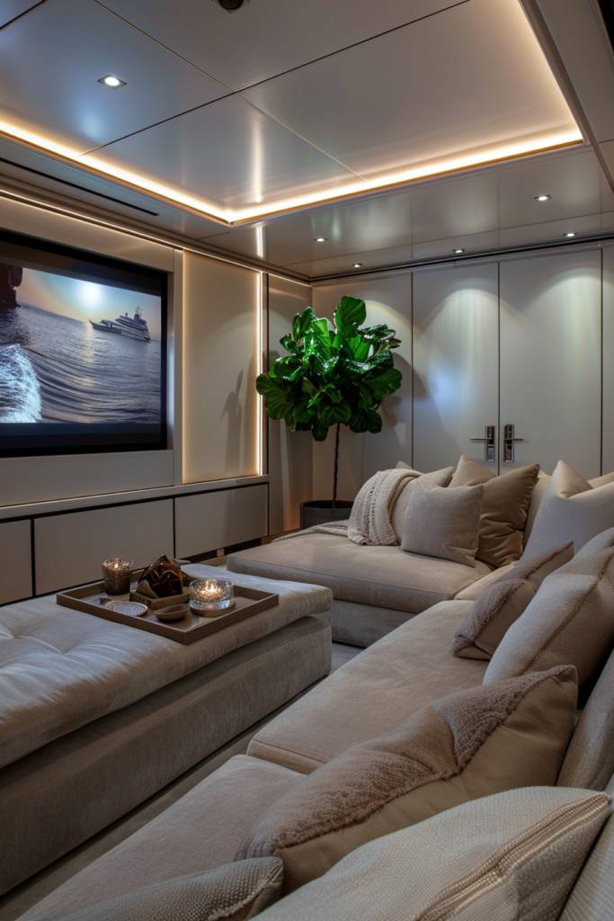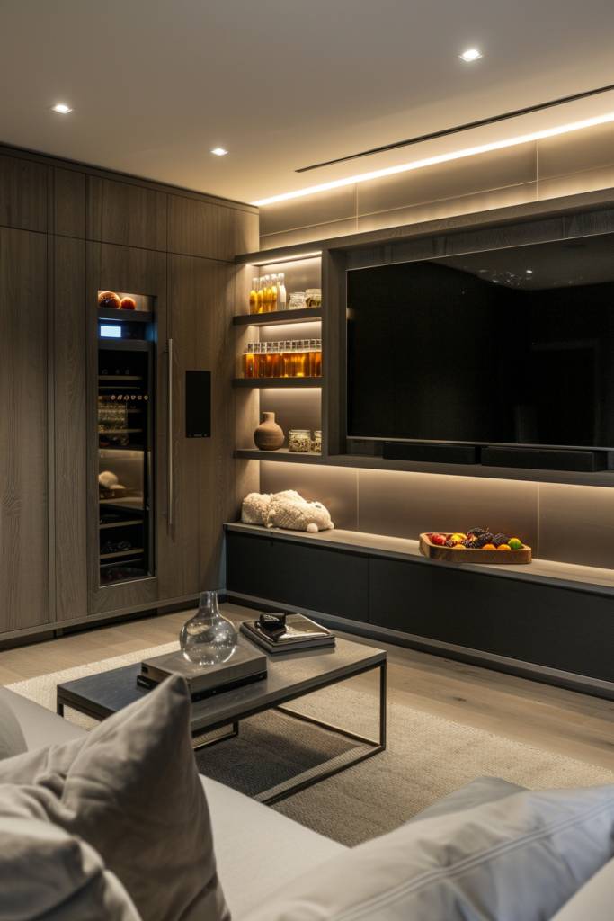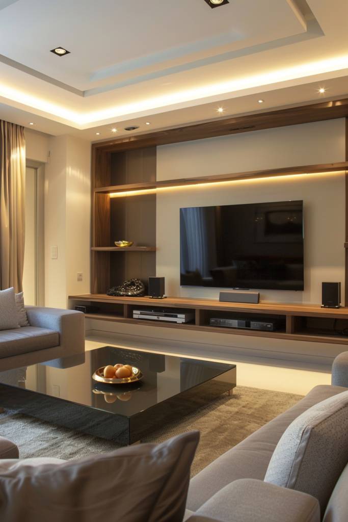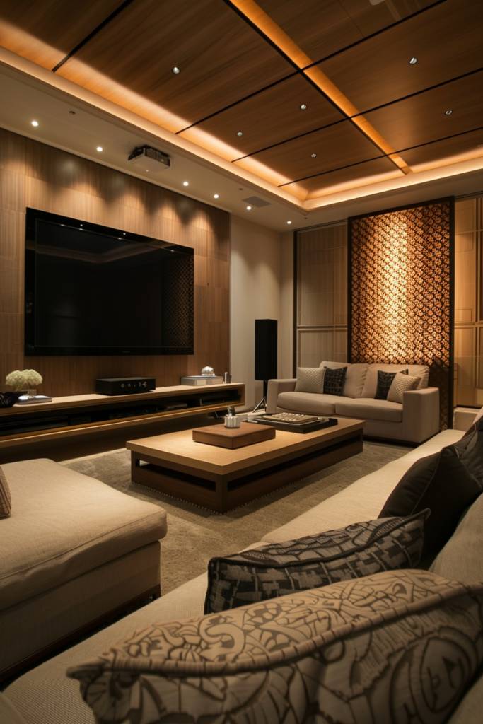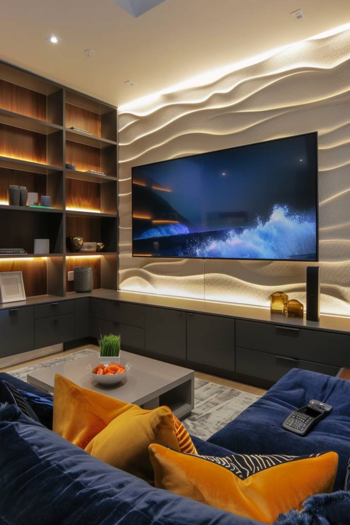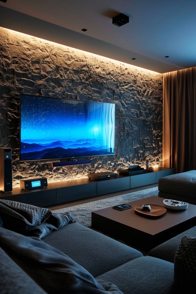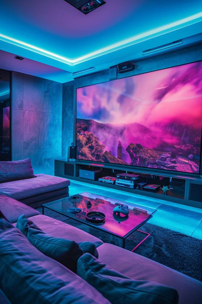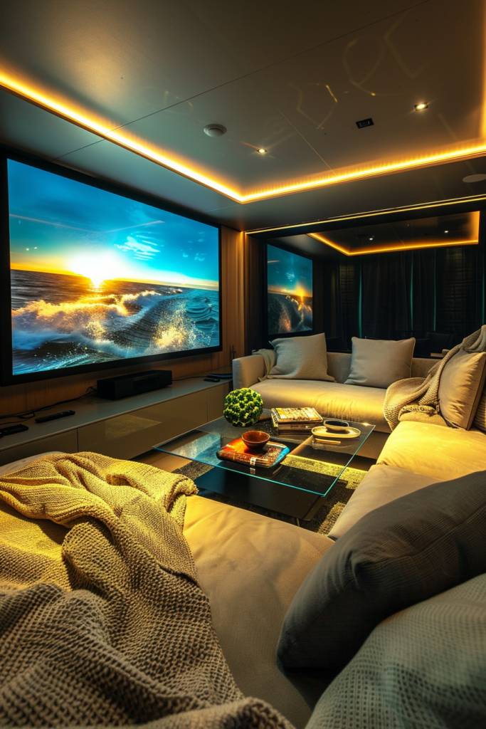 For added flair, consider accent lighting to highlight artwork or architectural features. This layered approach not only enhances the visual appeal but also enriches your viewing experience. Embrace smart lighting to create a versatile space that feels just right for every occasion.