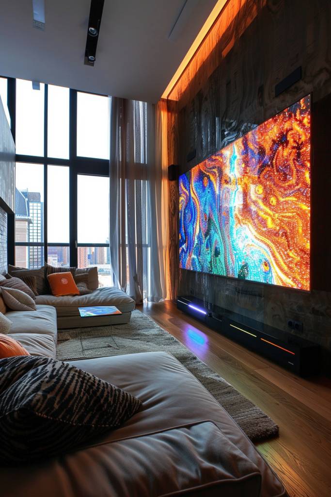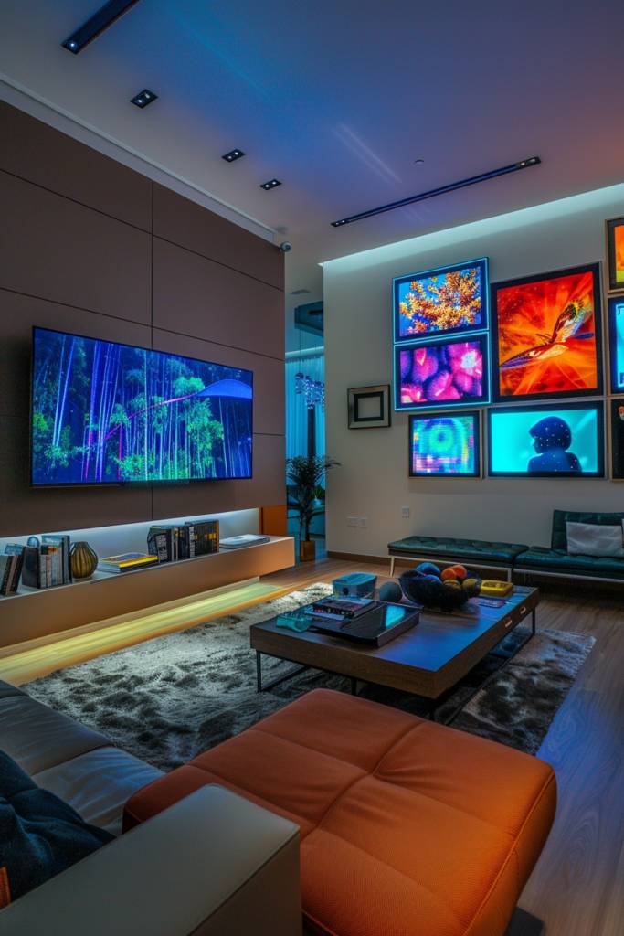 Building on the theme of modern technology enhancing your living space, digital art frames offer an enchanting way to showcase art and photography in your TV room. These innovative frames allow you to display a rotating gallery of your favorite pieces, from family photos to classic masterpieces, all at the touch of a button. You can easily customize the display settings, adjusting brightness and shifts to suit the mood of the moment.