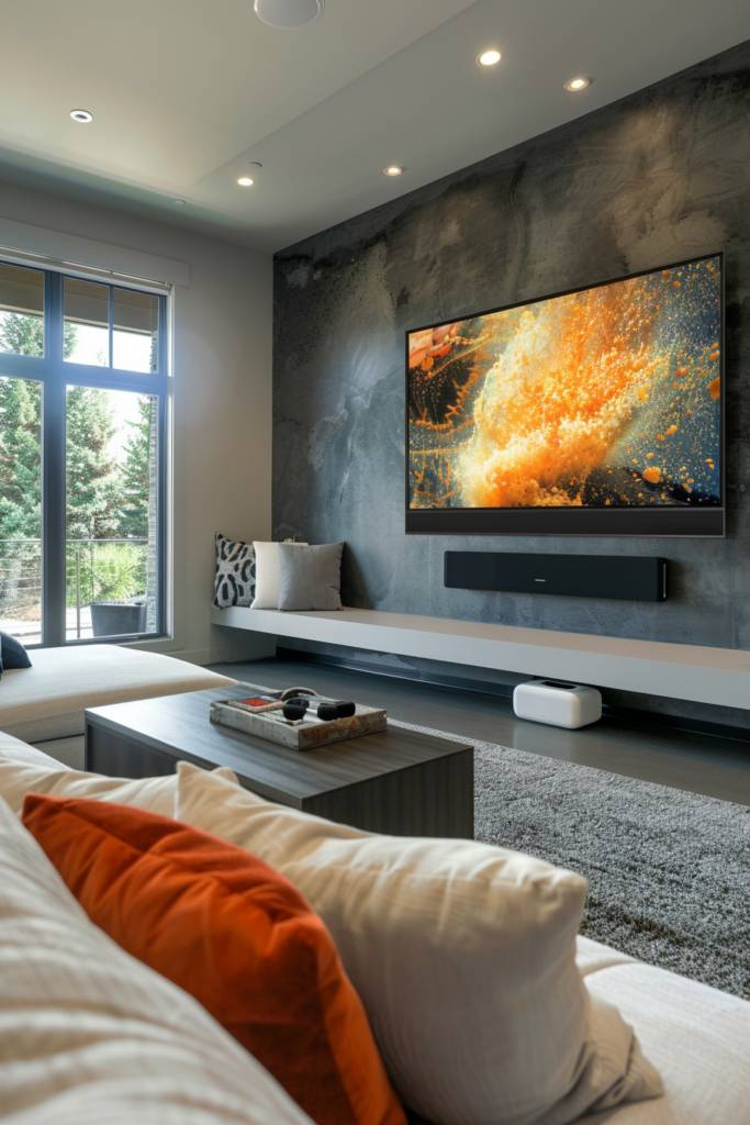 One of the most effective ways to enhance the look of your TV room is by implementing hidden cable management systems. These systems keep your cables organized and out of sight, creating a sleek and tidy environment. Picture your TV mounted on the wall with no unsightly wires dangling down; it instantly elevates the room’s aesthetic.