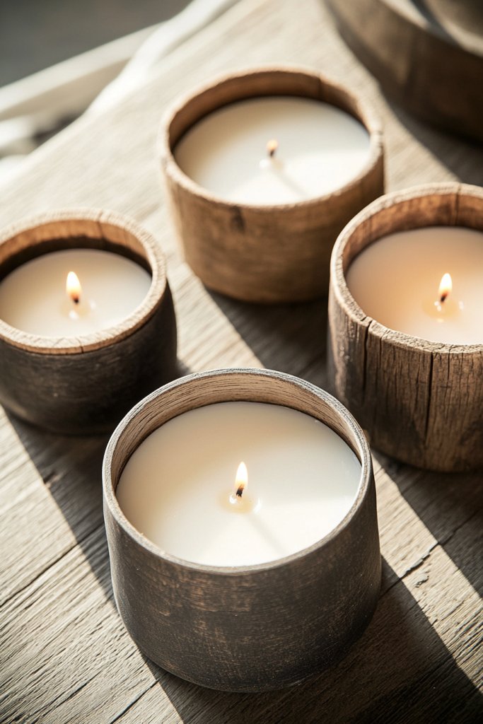 11. Subtle Scented Candles in Rustic Holders