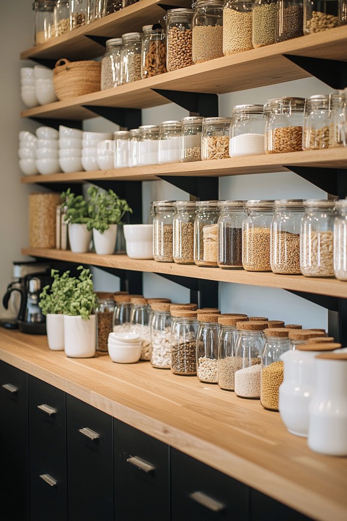 Imagine your pantry or countertop lined with neatly stacked jars and bins, each showcasing the vibrant colors and textures of your ingredients. Opt for containers with airtight seals to keep foods fresh while maintaining that clean aesthetic.