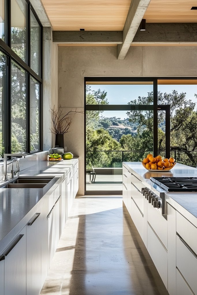 Incorporating large windows or glass doors can flood the space with natural light, highlighting the elegant lines and enhancing the overall aesthetic. With clean lines, your kitchen becomes not just a cooking area but a serene and sophisticated retreat in your home.