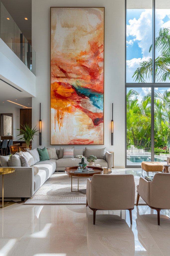 Think oversized canvases that evoke emotion or bold sculptures that draw the eye. The key is to select pieces that resonate with your lifestyle and complement your villa’s design.