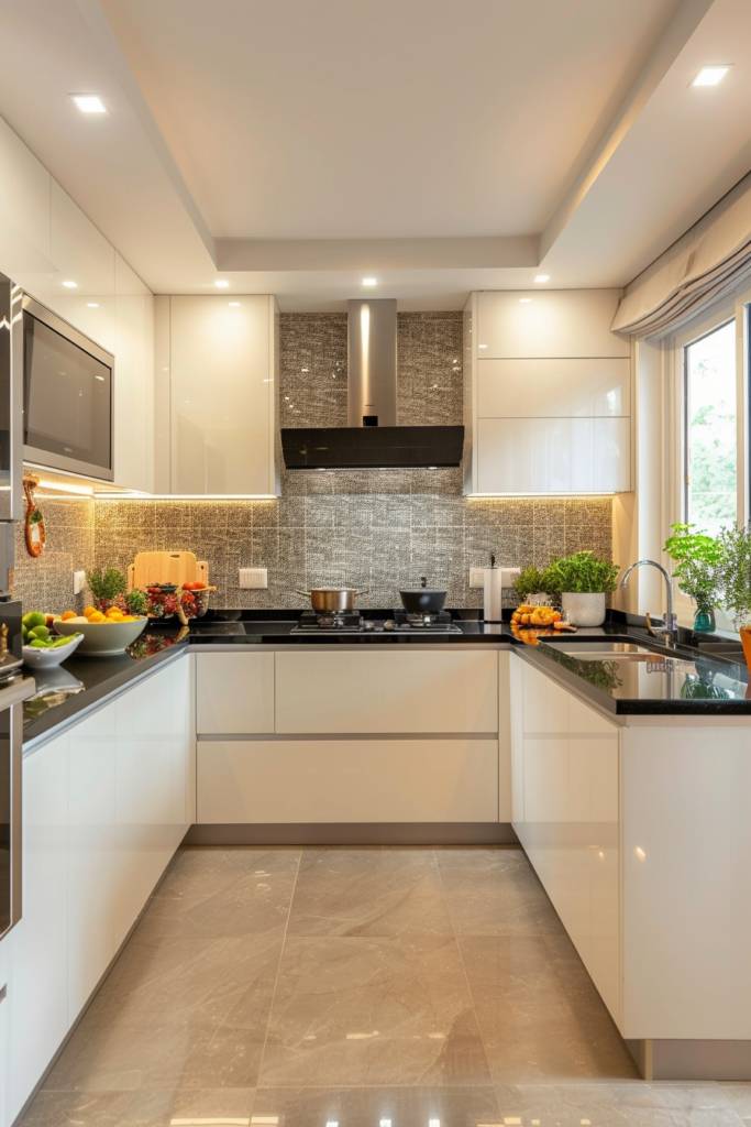 With the U-shape, you’ll find it easier to maintain an organized workflow. Cooking becomes a breeze as you can seamlessly shift between the fridge, stove, and sink. Consider adding an island for extra prep space or an informal dining area, enhancing both utility and aesthetics.
