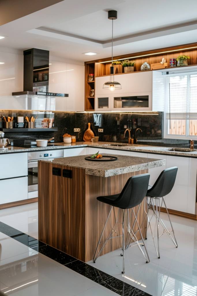 Consider a multi-functional island featuring a cooktop or a sink, allowing you to multitask seamlessly. If you love to bake, a marble-topped island is perfect for rolling dough while keeping your kitchen chic.