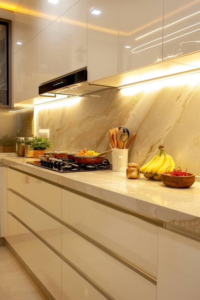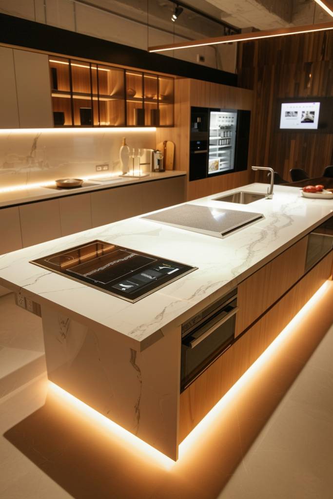 Consider trendy color temperatures—warm whites offer a comforting glow, while cool whites can add a contemporary touch. This subtle design element not only elevates your kitchen’s aesthetic but also improves safety by illuminating hidden nooks. It’s a simple upgrade that brings both style and practicality to your cooking space, making every meal feel special.