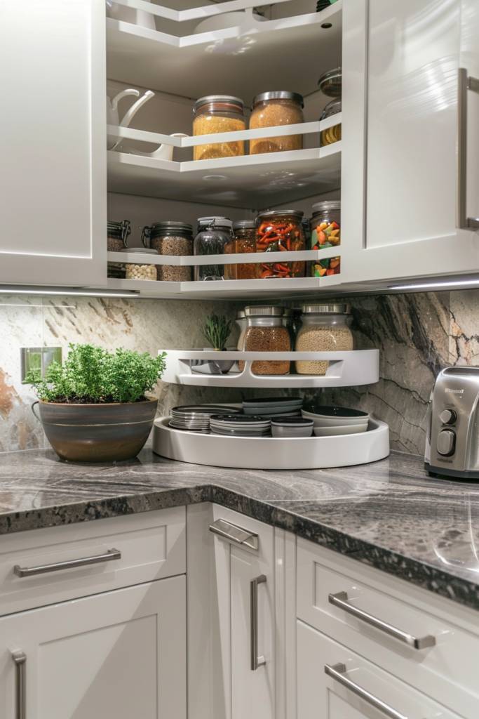 When it comes to maximizing every inch of your kitchen, corner cabinets with lazy Susans are a game changer. These clever rotating shelves allow you to easily access your spices, cookware, and other kitchen essentials, eliminating the frustration of reaching into dark corners. Imagine smoothly spinning a lazy Susan to reveal a selection of jars and cans, keeping everything organized and visible.