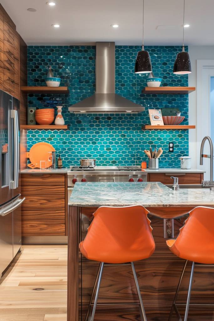 What happens when you combine creativity with function in your kitchen? You get a bold backsplash that not only protects your walls but also makes a striking statement. Think colorful mosaics or geometric tiles that draw the eye and spark conversation. If you’re feeling adventurous, consider a vibrant, oversized mural that reflects your personality—it’s like art meets practicality.