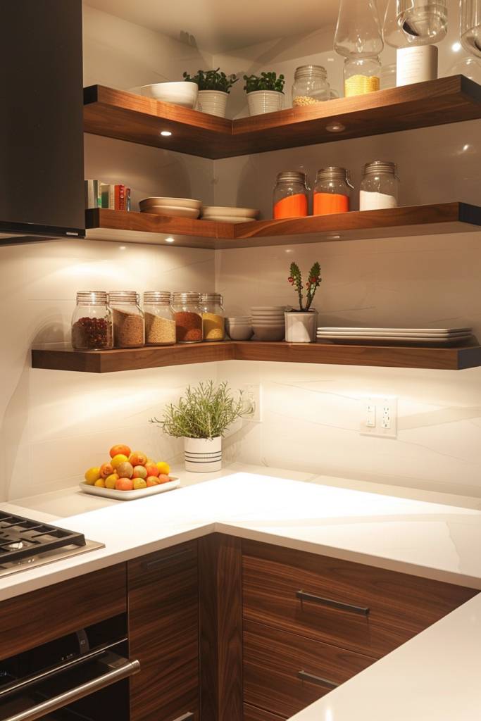 Don’t forget about lighting! Adding under-shelf lighting can enhance visibility and create a cozy ambiance. With modular shelving, you’ll not only declutter your space but also elevate your kitchen’s design, making it a functional and stylish hub for cooking and entertaining.