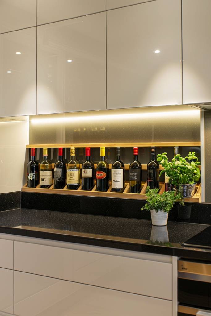 Be sure to take into account temperature control; keeping your wines in a designated, slightly cooler area can preserve their quality. With built-in wine racks, you’re not just storing bottles—you’re creating a personalized touch that speaks to your love for fine wine and entertaining. Cheers to a kitchen that truly reflects your style!