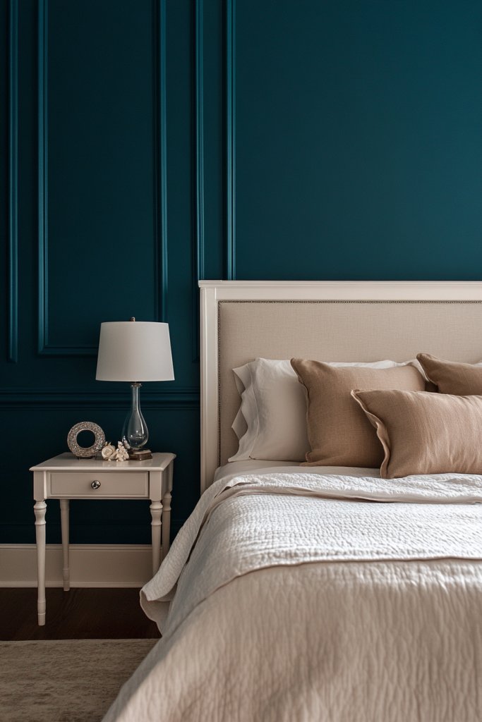 Ever want a bedroom that feels modern, vibrant, and calming all at once? Deep teal walls provide a rich, sophisticated base that’s full of personality. But many worry it might feel overwhelming or dark. The solution is pairing it with matte white trims and moldings to create a crisp, contemporary look that’s balanced and refreshing. If you love bold colors but crave a clean aesthetic, this might be your dream combo.