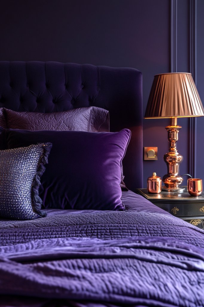 Plum and warm copper accents have gained popularity for creating bedrooms that feel lush and decadent. They show how deep hues paired with metallic warmth can craft a space of both comfort and glamour. Your bedroom can be a personal palace of style and relaxation. Ready to indulge?