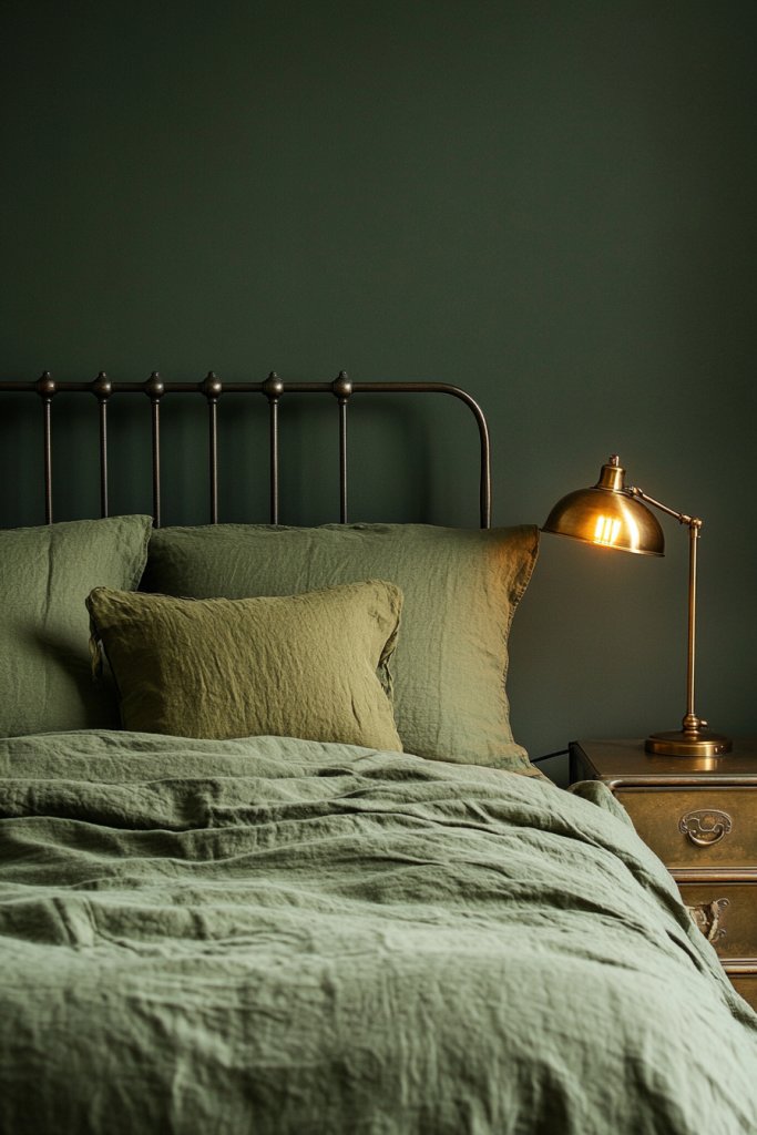 Looking for a bedroom color that’s lush, calming, and a little unexpected? Deep olive green offers a rich, soothing vibe that feels both sophisticated and grounded. But many are unsure how to pair it with the right lighting and accessories to keep the space inviting. If you want a serene retreat that also feels luxe, this idea might be perfect.