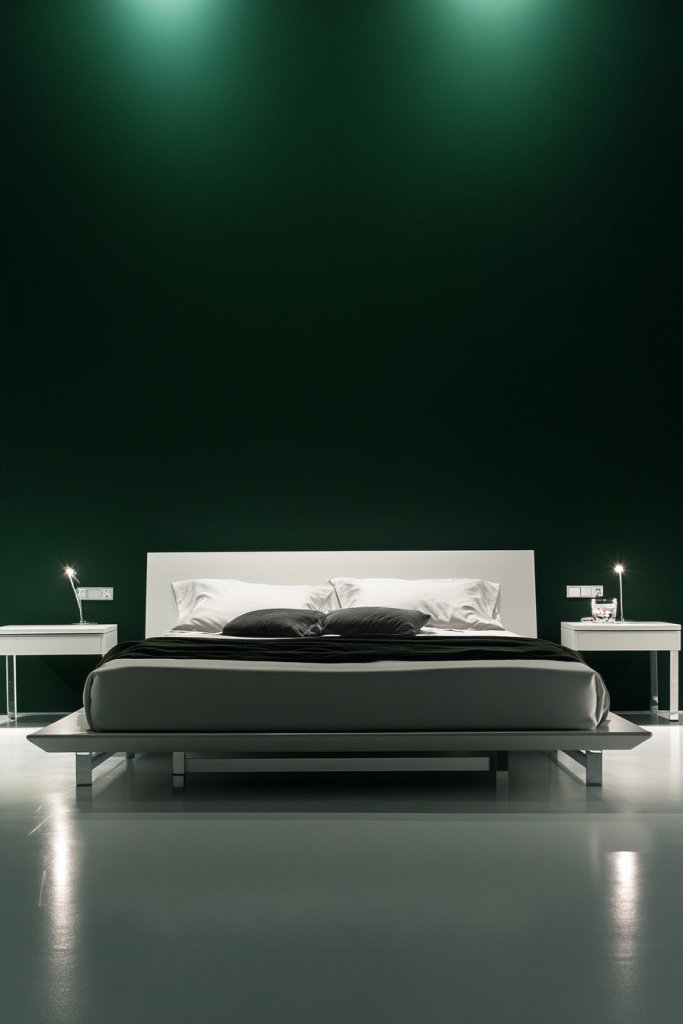 4. Minimalist Dark Green Walls with Sleek White Furniture