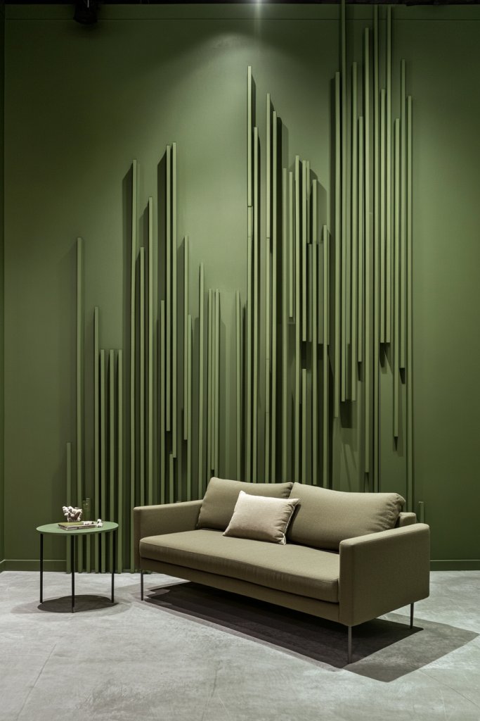 Feeling like your home needs an edgy, modern update? Asymmetrical batten installations in olive green can bring a contemporary, artistic vibe to any room. It’s a bold approach that breaks away from traditional symmetry, making your space uniquely yours. Plus, it’s a fun DIY project that adds personality and visual interest.