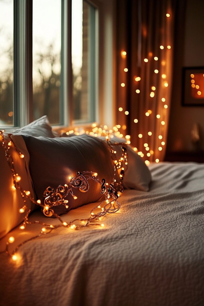Fairy lights with musical accents bring instant warmth and personality to your room. They’re a cost-effective way to create a dreamy, inspiring environment. Trust your creative instincts—play around with placement and colors. Your space will glow with your love for music and make every night special.