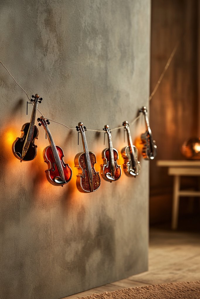Want a subtle nod to your favorite instruments without overwhelming your decor? Stringing small instrument-shaped ornaments adds a delicate, musical touch. It’s a playful yet refined way to personalize your space. Perfect for those who love detail and want to keep things lightweight.