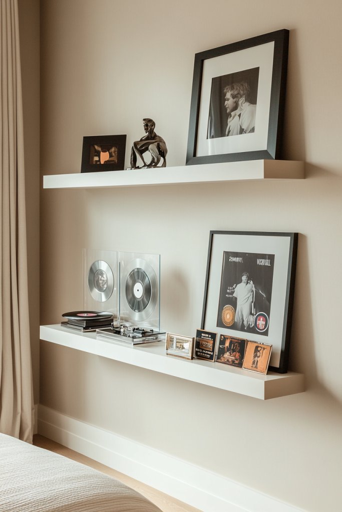 3. Install Floating Shelves for Your Favorite Music Collectibles