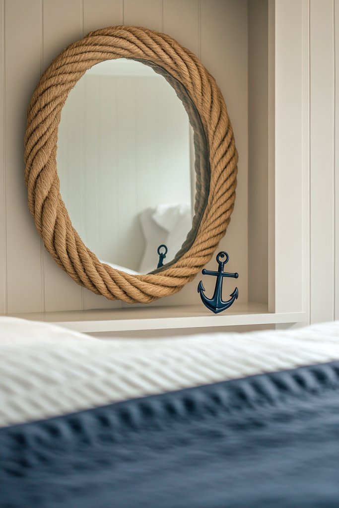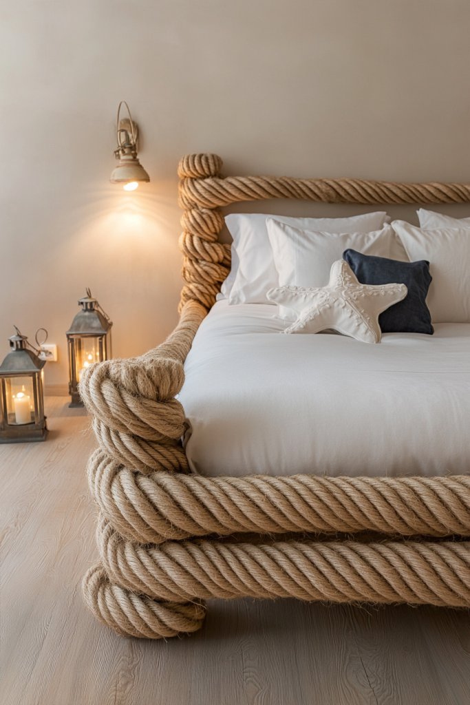 Or imagine wall-mounted rope garlands framing your headboard area, adding depth and a tactile element. Small rope accents on drawer pulls or curtain tiebacks add a maritime vibe without overwhelming the space.