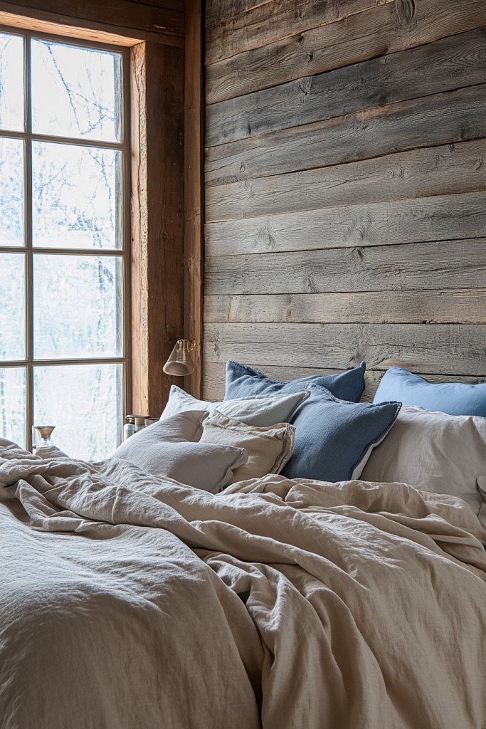Plus, it’s a practical way to add texture without clutter. Imagine walls clad in reclaimed pine or cedar planks with peeling paint and a soft gray patina.