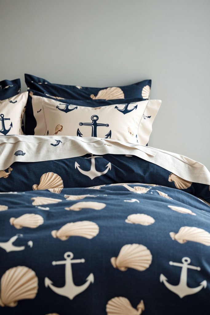 4. Nautical-inspired Bedding with Anchors and Shell Prints