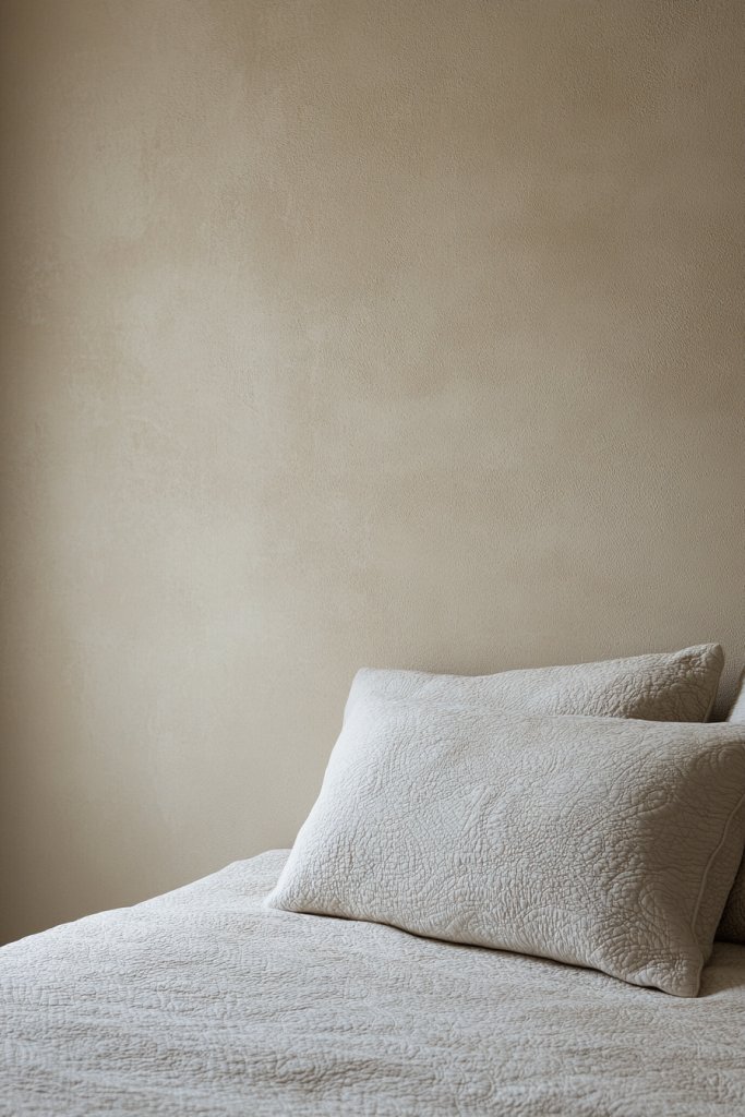 You can switch up the texture—think subtle stucco, linen-like finishes, or even a Venetian plaster for a more luxe feel. For a brighter look, pair the beige with crisp white trim; for a more moody vibe, opt for darker accent textures. This idea works well in both small and large rooms, scaling the textures accordingly. Seasonal tweaks like adding warm lighting or swapping bedding can enhance the effect.