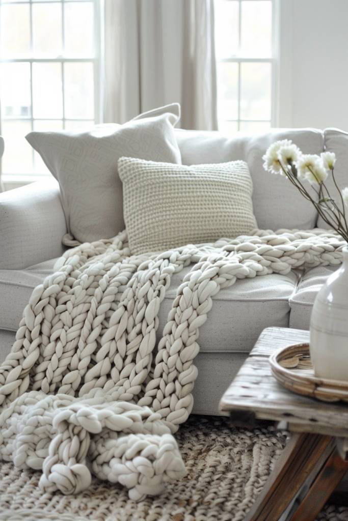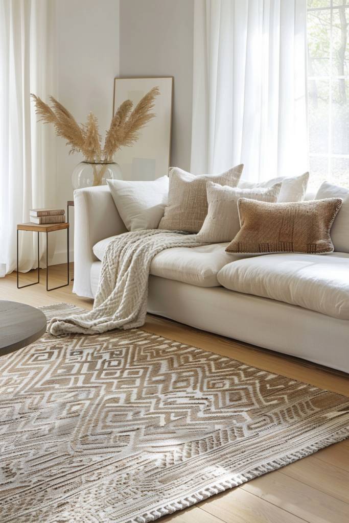 Consider a chunky knit throw draped over a light-colored sofa. It adds warmth and a sense of touch that’s hard to resist. Pair this with a mix of patterned and solid pillows in varying textures to create depth and intrigue. An area rug with a rich pile can anchor the space, softening hard surfaces while inviting bare feet to indulge.