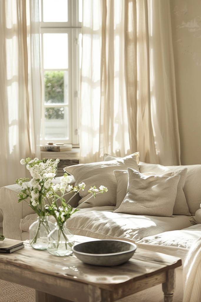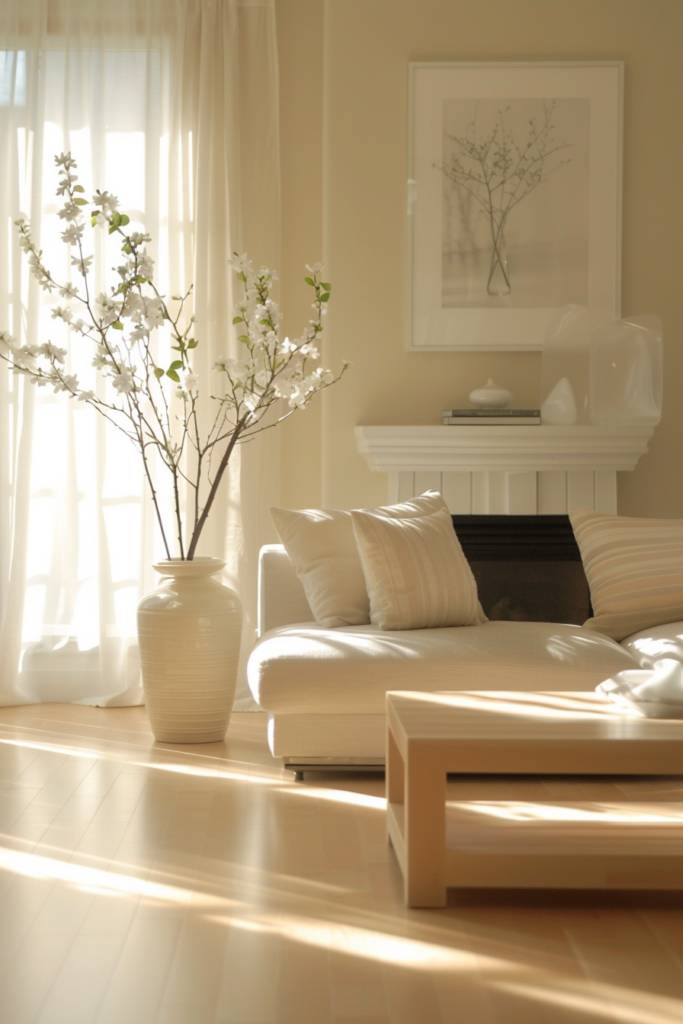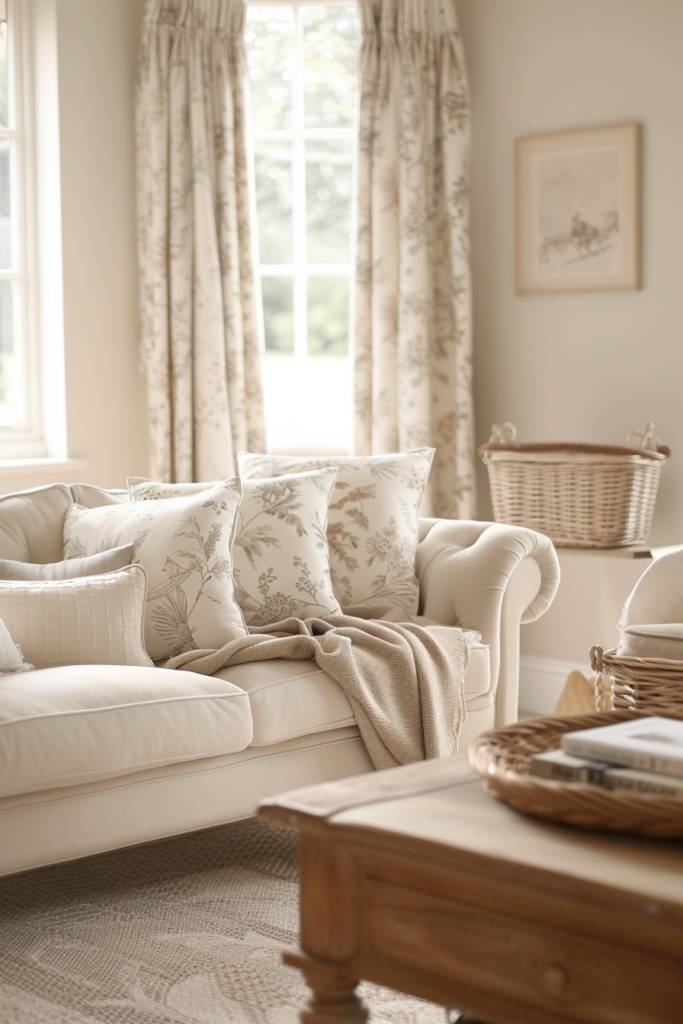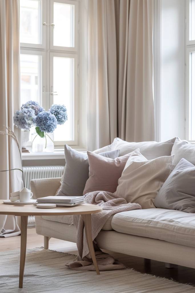 Incorporate delicate decor items, like ceramic vases in soft whites or light blues, arranged thoughtfully on your coffee table. Textured throw pillows in gentle shades can add depth and comfort to your seating. Consider wall art with watercolor landscapes or minimalistic prints that echo the soft color palette.