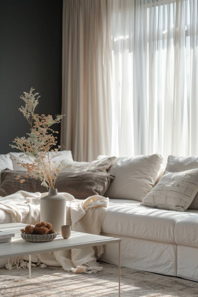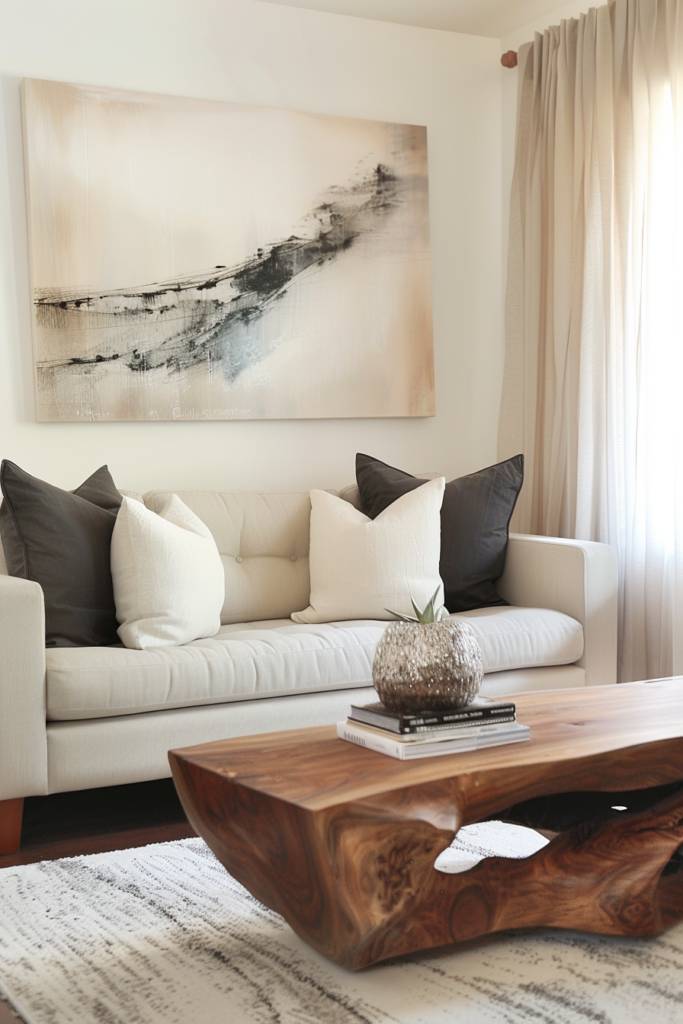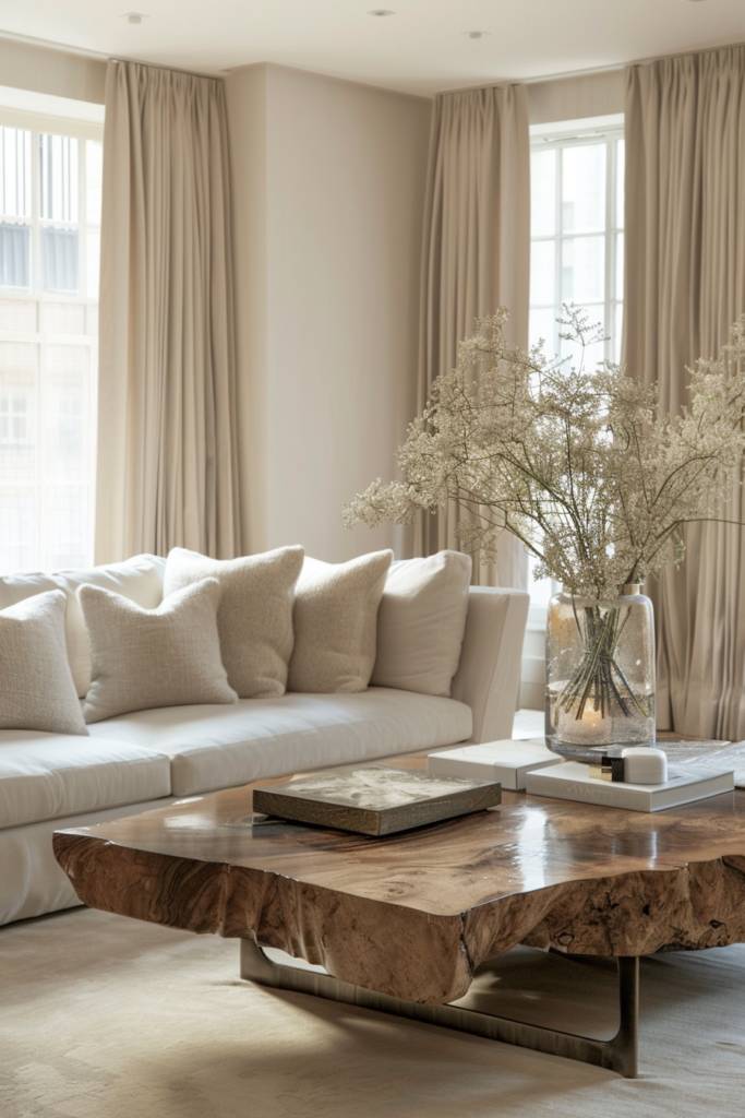 Layering textured fabrics sets the stage for another essential element in achieving a serene yet stylish living room: statement furniture in neutral hues. Imagine a striking coffee table in a soft taupe or a sculptural armchair in a warm beige. These pieces don’t just serve a function; they become focal points that draw the eye and elevate your space. When choosing your statement furniture, consider clean lines and unique shapes to create visual interest without overwhelming the room’s tranquility.