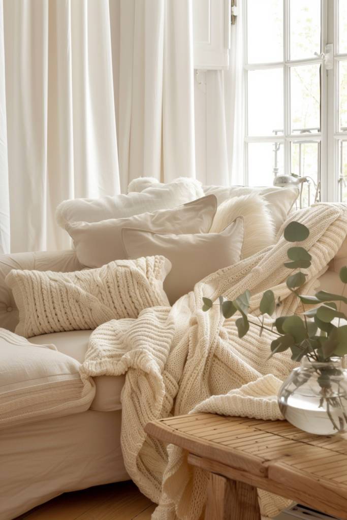 While a neutral palette provides a calming backdrop, introducing textured fabrics can transform your living room into a cozy haven. Think about layering soft throws, plush pillows, and tactile upholstery that invite you to sink in and relax. Fabrics like linen, velvet, and boucle not only add visual interest but also create a tactile experience that enhances comfort.