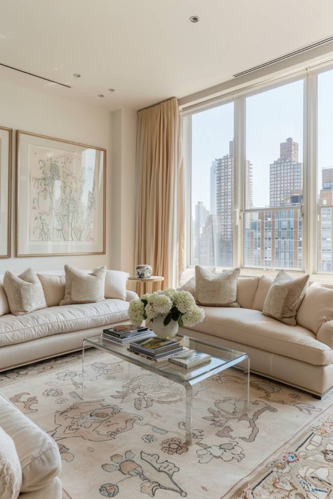 Finally, remember to keep accessories to a minimum—select one or two striking art pieces or sculptural objects that resonate with your style. With these elements, your living room will embody a serene, timeless elegance.