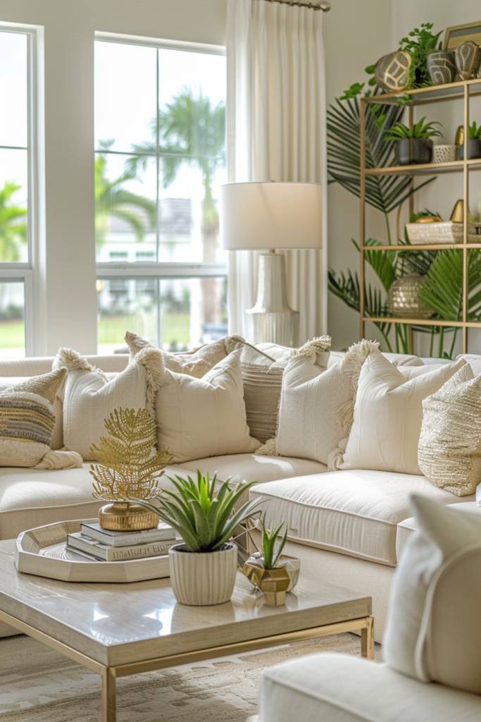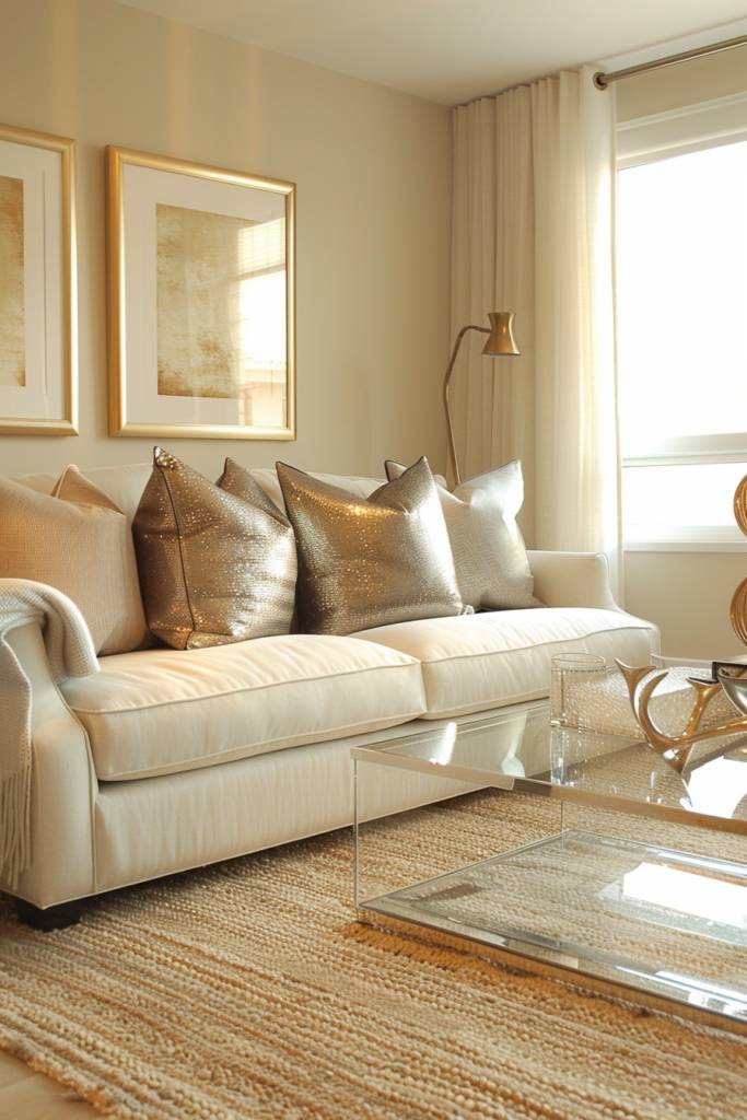 Consider integrating metallic textiles, like a silk throw pillow with a subtle sheen or a textured silver area rug. These soft touches can create depth without overwhelming your neutral palette.