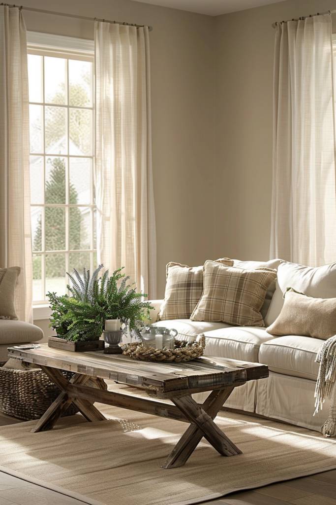To enhance this rustic appeal, incorporate elements such as a jute rug or leather accents. These textures create depth and interest, inviting tactile exploration. You might also add greenery—think potted plants or a vase of wildflowers—to breathe life into the room.