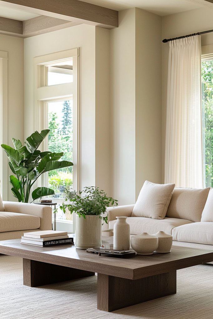 Add greenery with potted plants to introduce an invigorating contrast, bringing life into the room. With soft beige, you’re crafting a timeless sanctuary that encourages relaxation and fosters connection, making it an ideal choice for any living space.