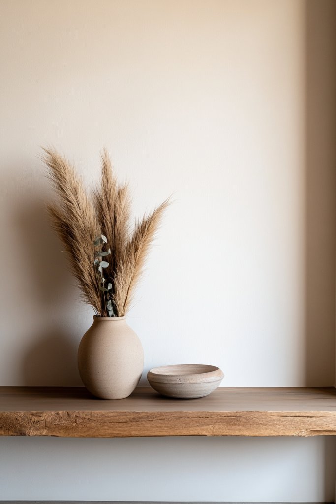 Choose dried or faux botanical elements that suit your aesthetic—look for realistic textures and subtle colors. Use simple, neutral containers like ceramic or matte-finish vessels. Position them strategically to add visual interest without overwhelming the space. Avoid heavy or overly ornate planters—simplicity is key. Regularly dust or refresh faux elements to keep them looking their best.
