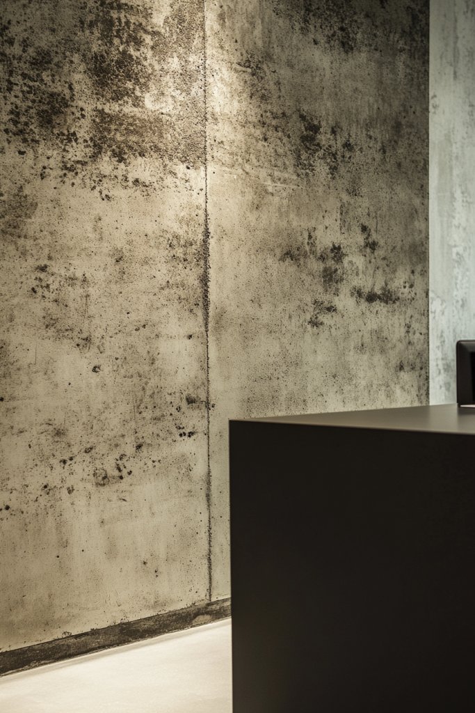 Picture a textured gray wall with subtle variations in tone, mimicking real concrete. The surface can be matte or slightly rough, with tiny imperfections that add authenticity. When paired with sleek furniture and metal accents, the space feels modern yet rugged. The texture catches light differently, emphasizing its industrial character.
