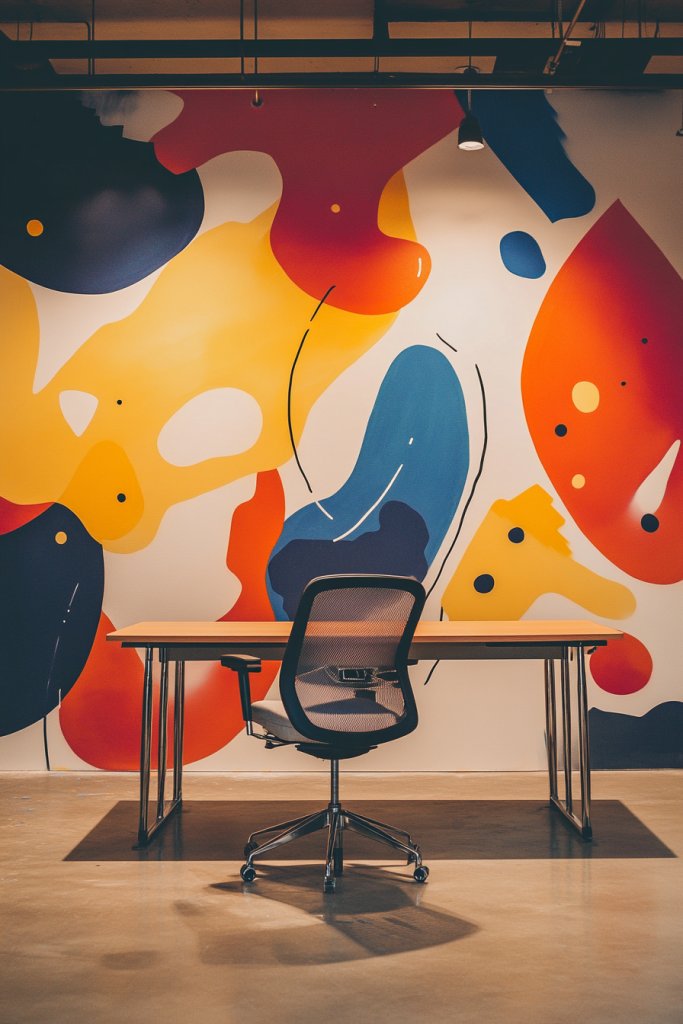 Choose a theme or style that reflects your personality—whether playful, modern, or abstract. Large-scale murals work well in spacious offices, while smaller designs suit compact areas. You can also incorporate stencils or DIY techniques to keep costs down. Complement the artwork with simple furniture and minimal accessories to let the mural stand out.