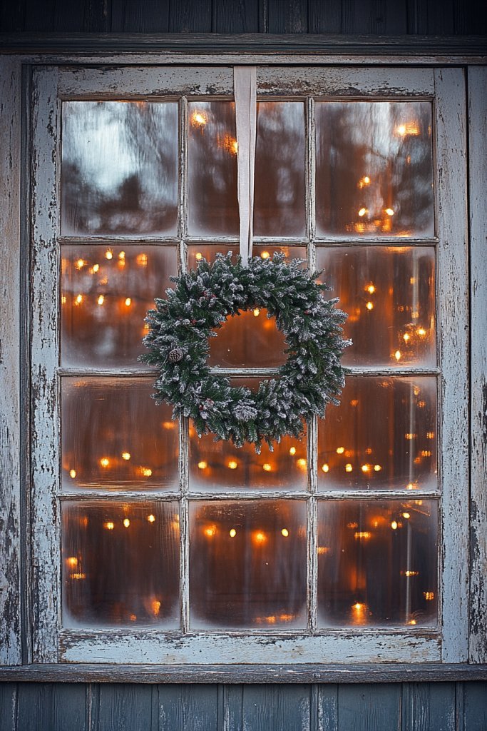 Prepare your vintage window frame by cleaning and securing it on the wall with strong hooks or brackets. Weave fairy lights through the panes, securing the wiring carefully.